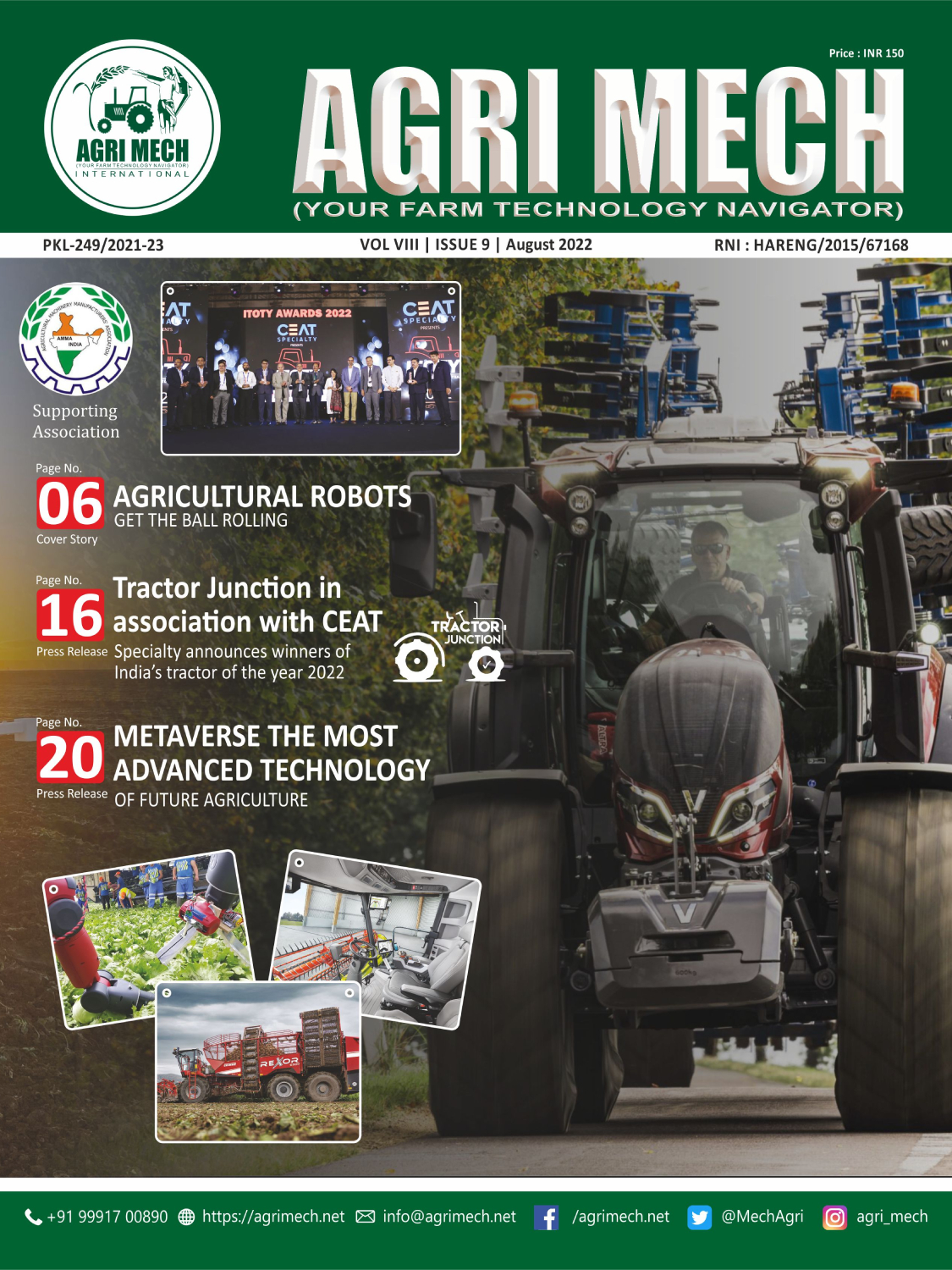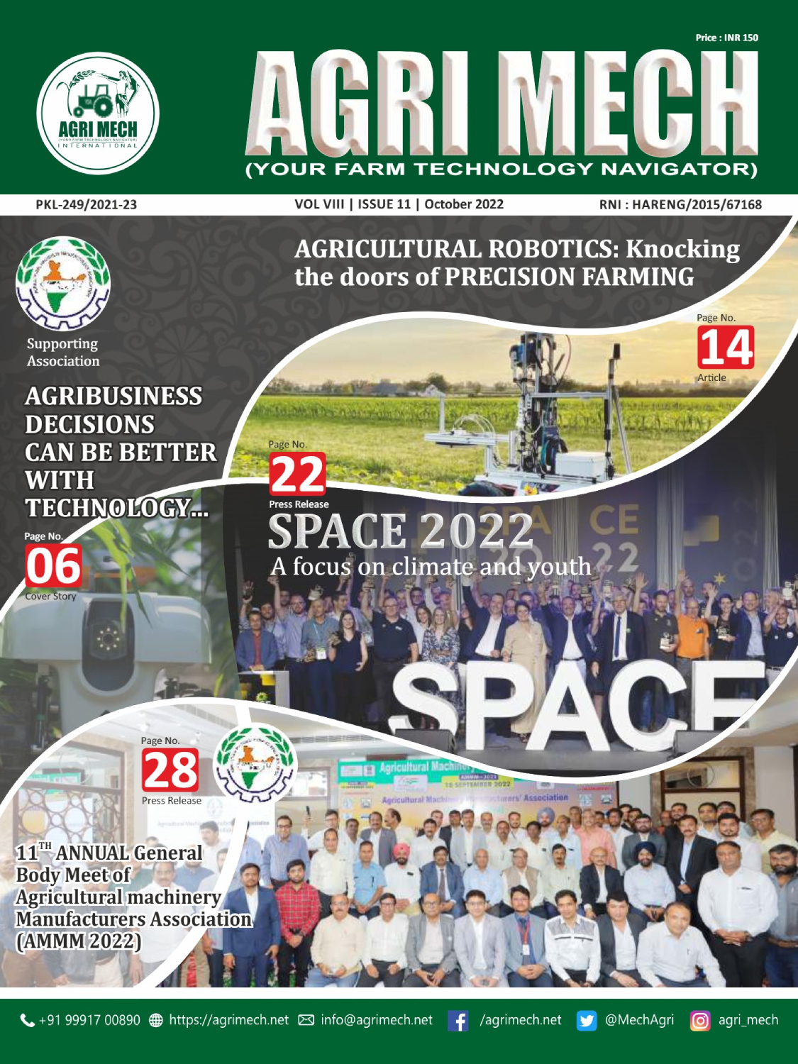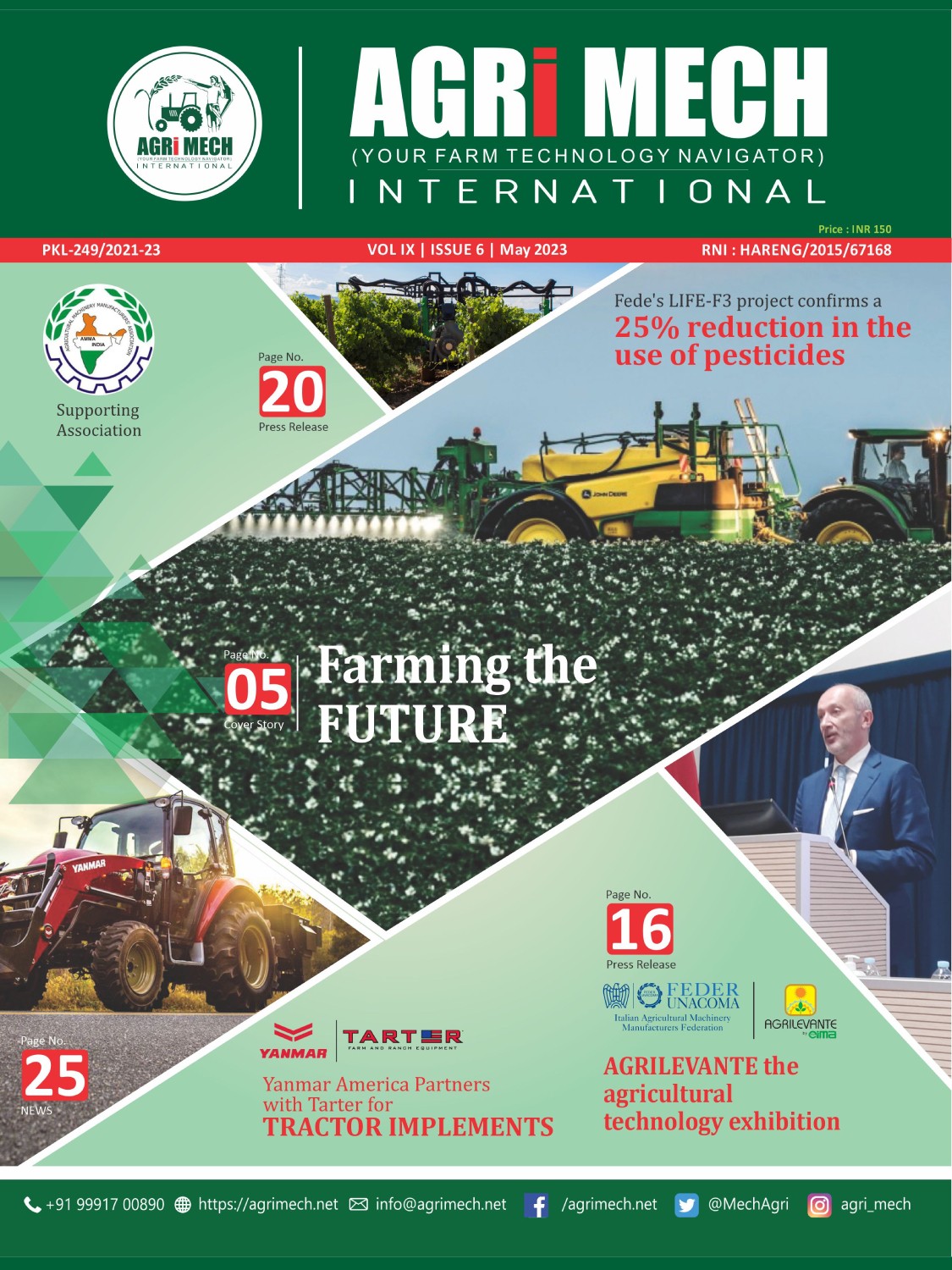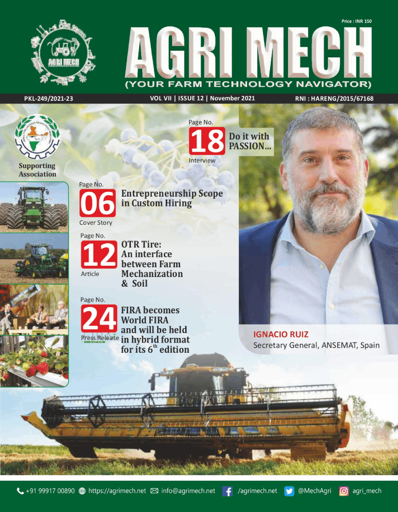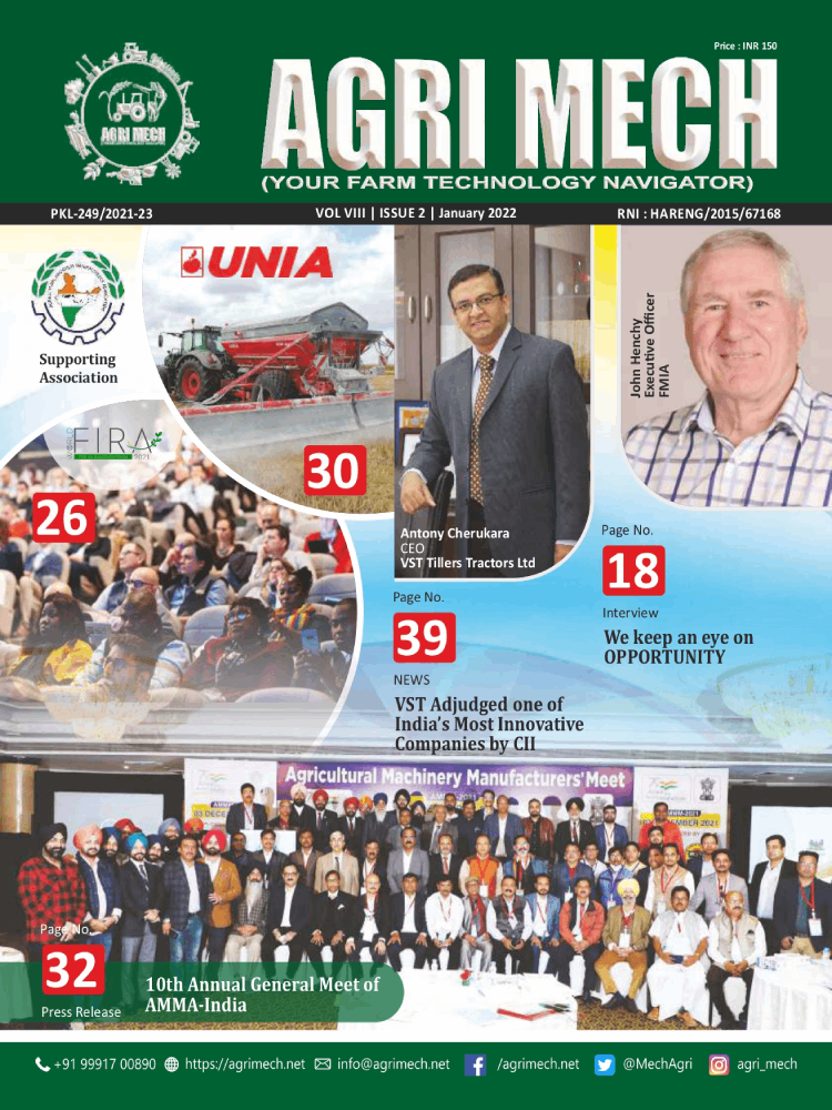 AGRI MECH is worlds’ numero uno magazine on Farm Technologies & allied industries, which is brought out in association with Agricultural Machinery Manufacturers’ Association (AMMA-India).