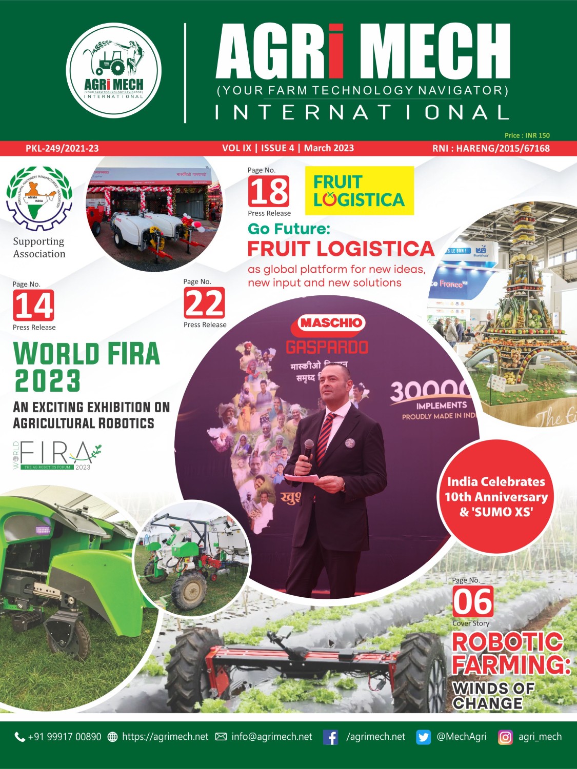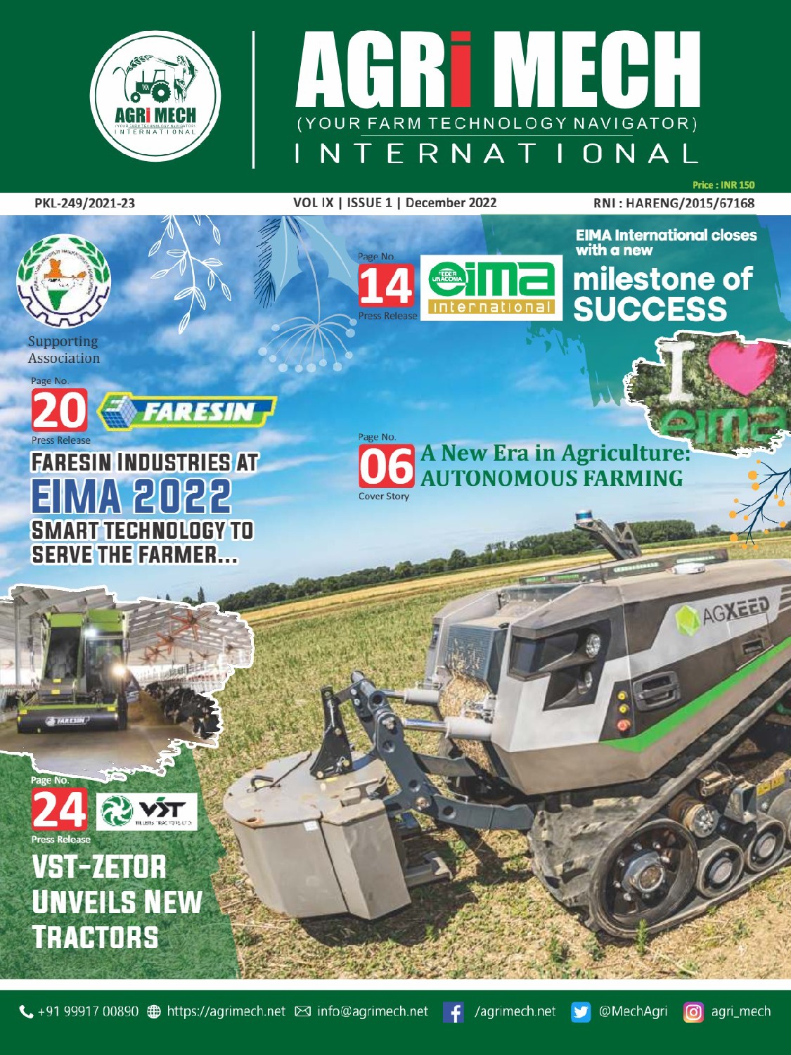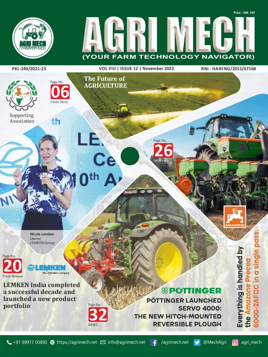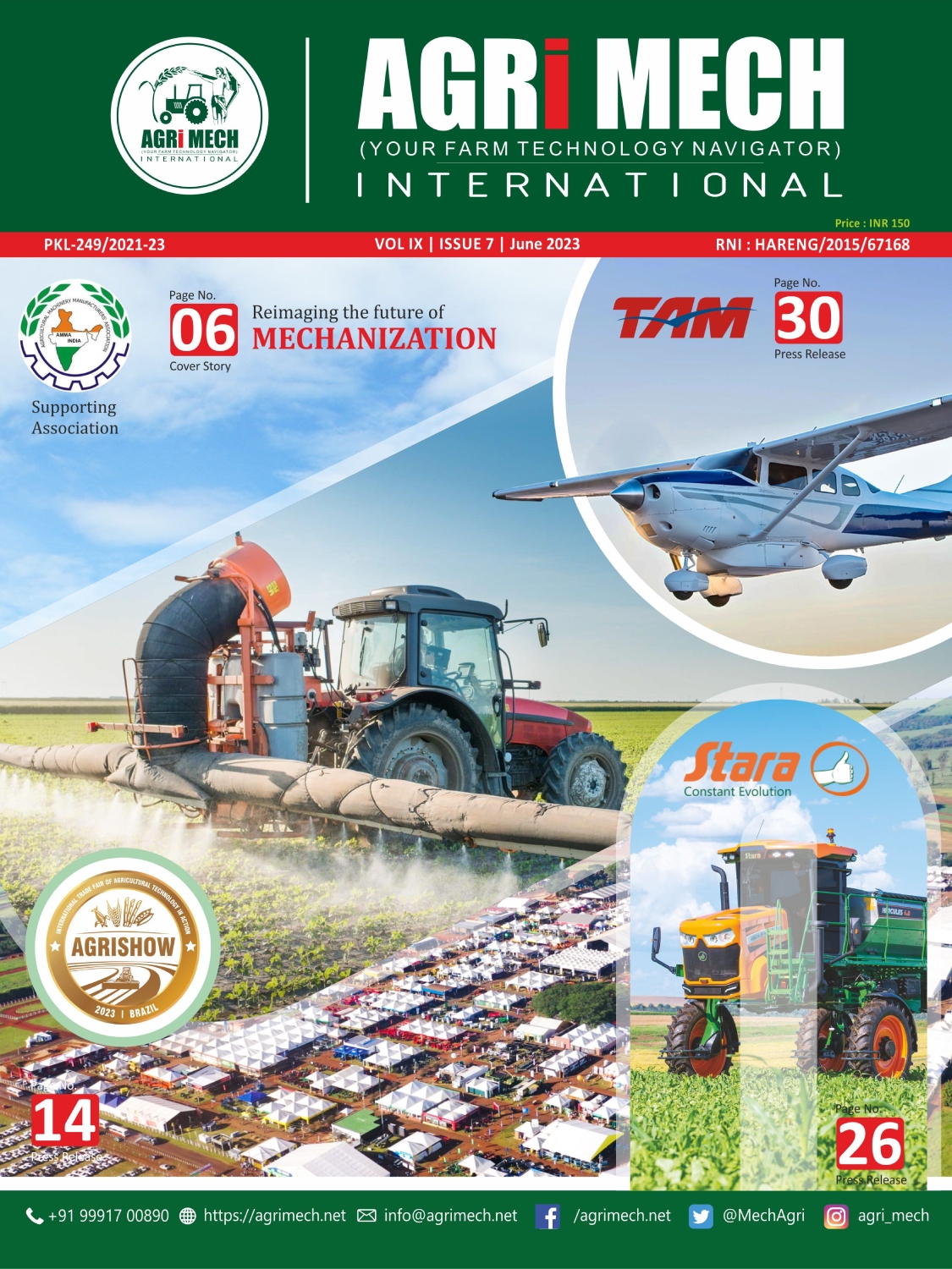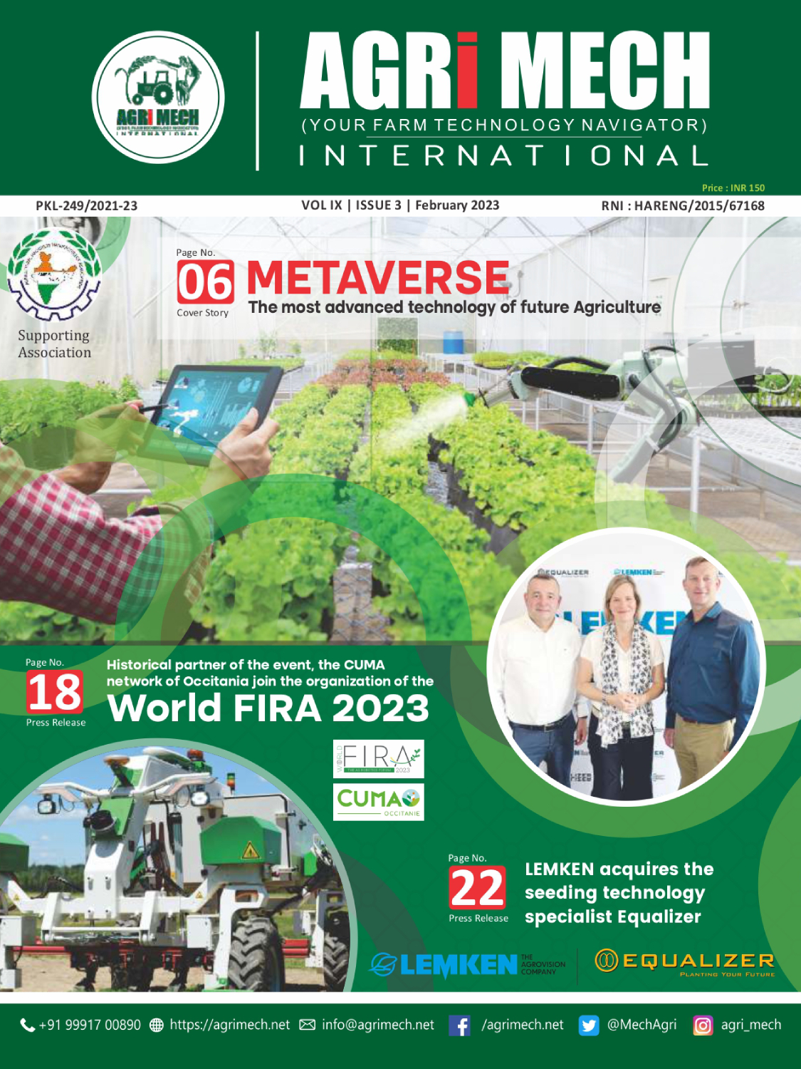 AGRI MECH is worlds’ numero uno magazine on Farm Technologies & allied industries, which is brought out in association with Agricultural Machinery Manufacturers’ Association (AMMA-India).
