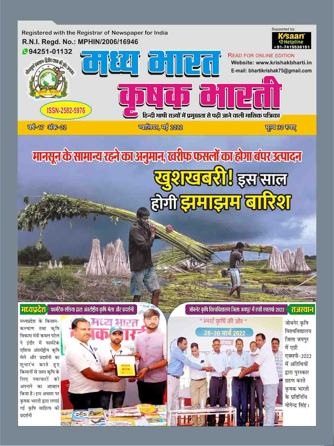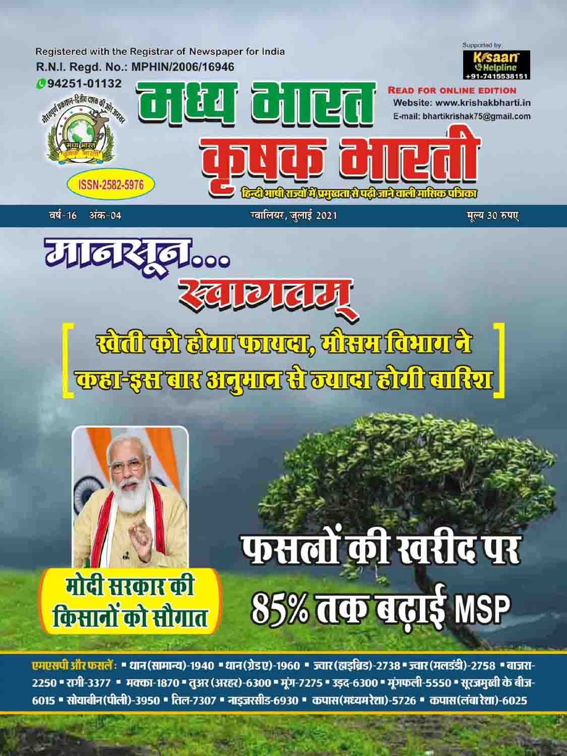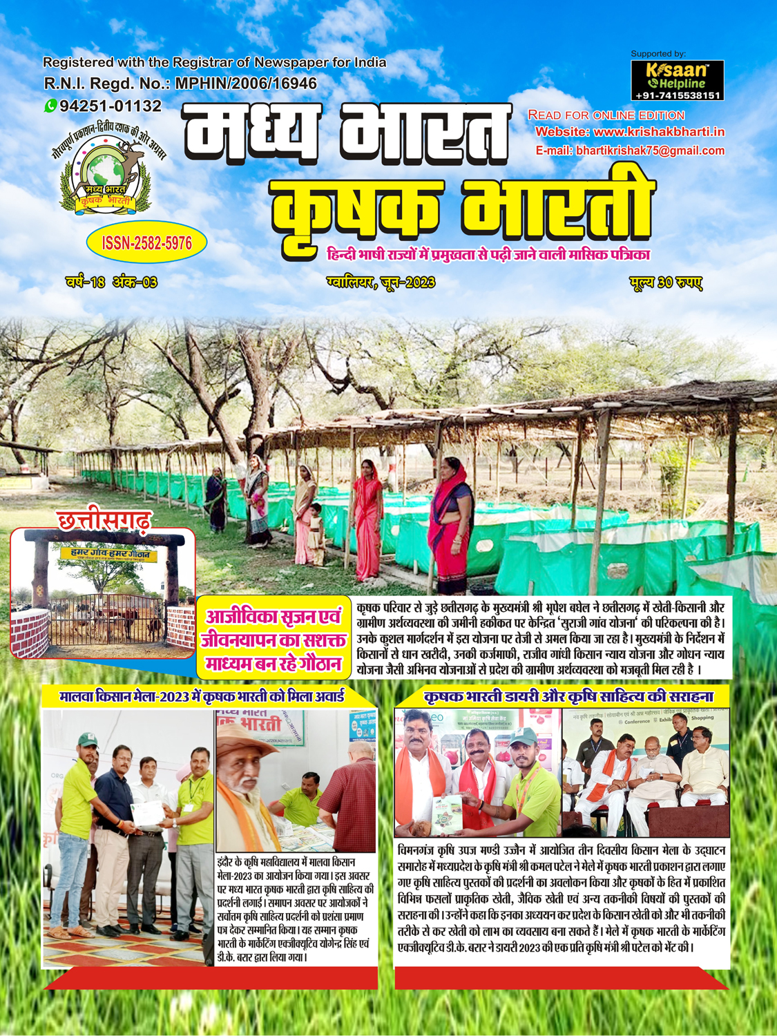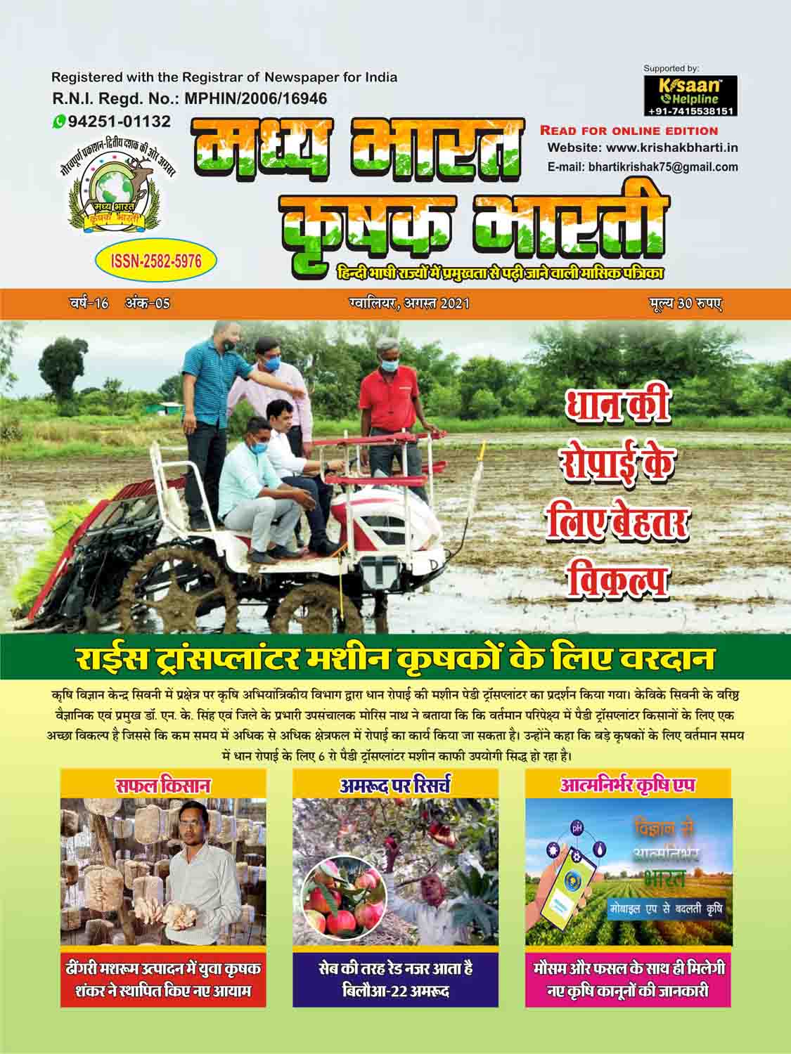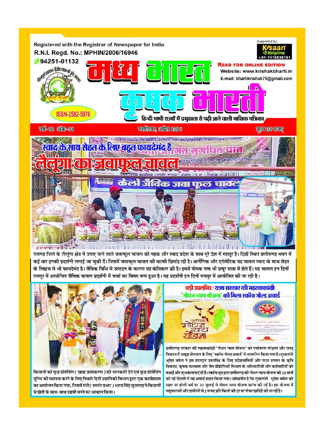 The best agricultural monthly magazine of Hindi speaking states, Madhya Bharat Krishak Bharati, is the only agricultural magazine published from North Madhya Pradesh.