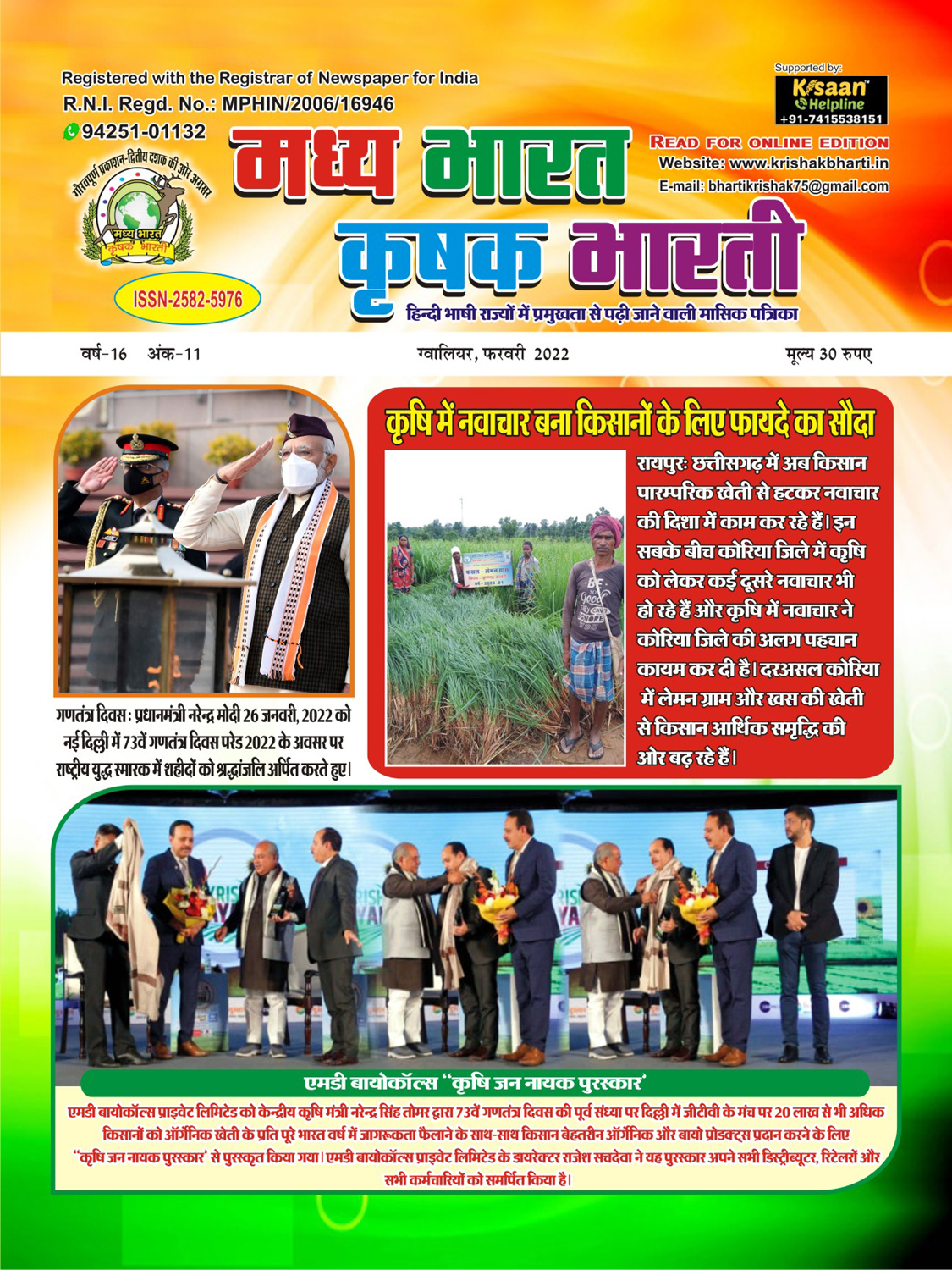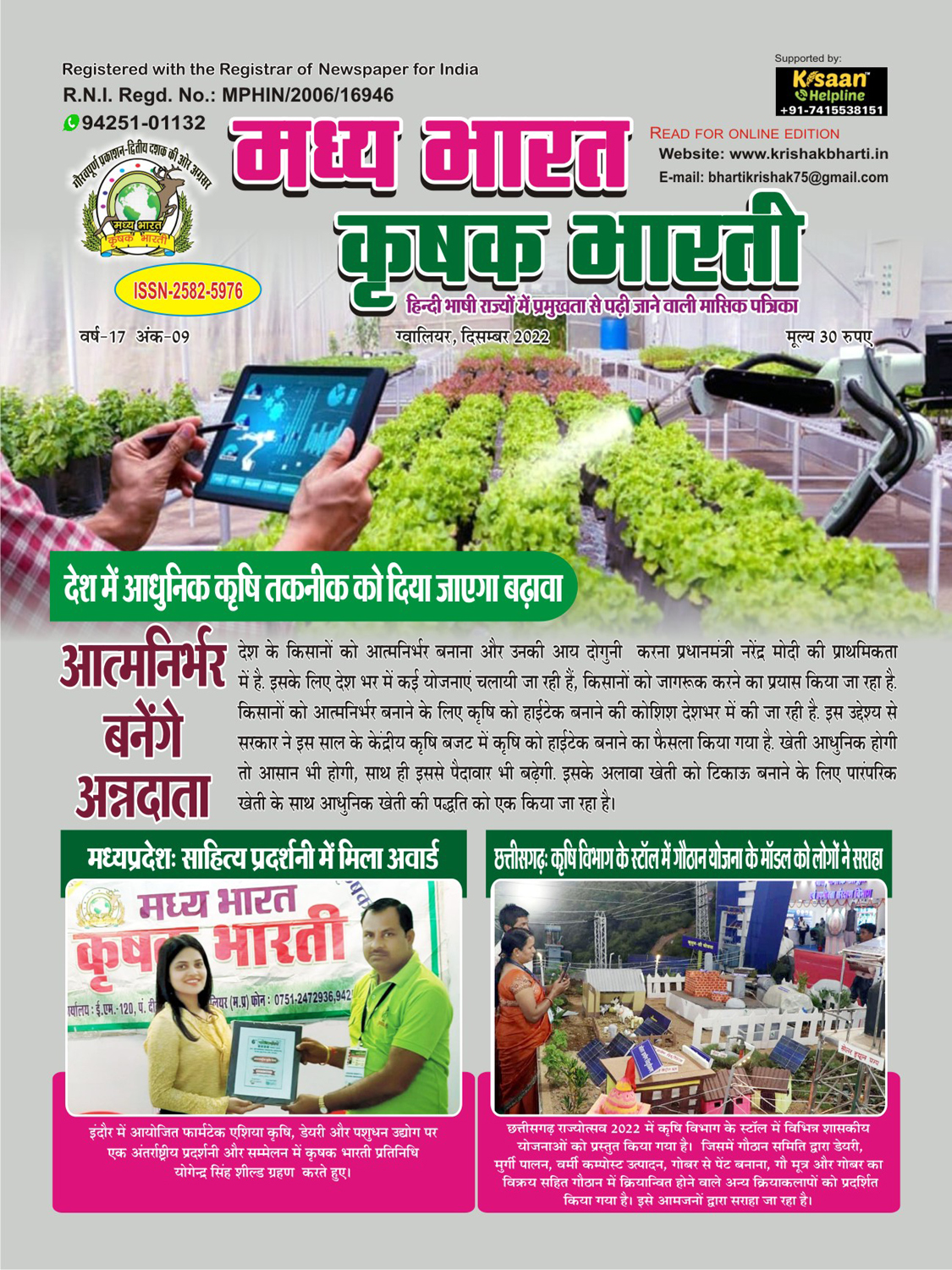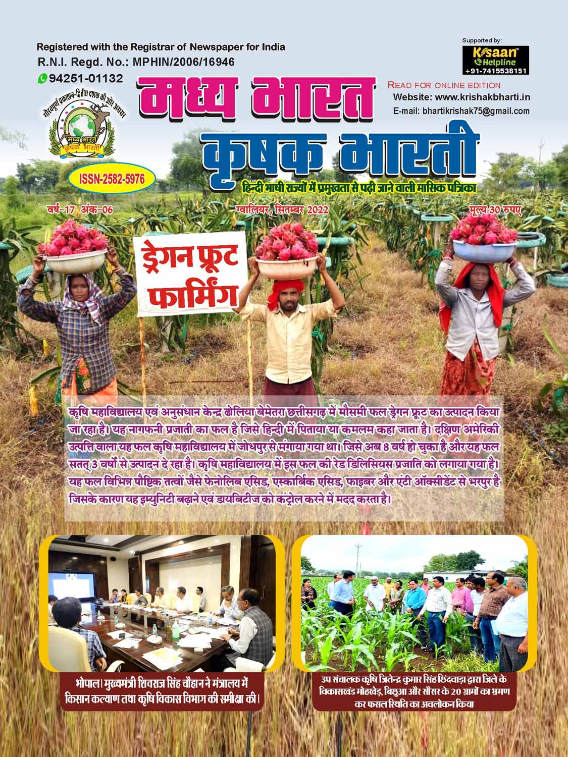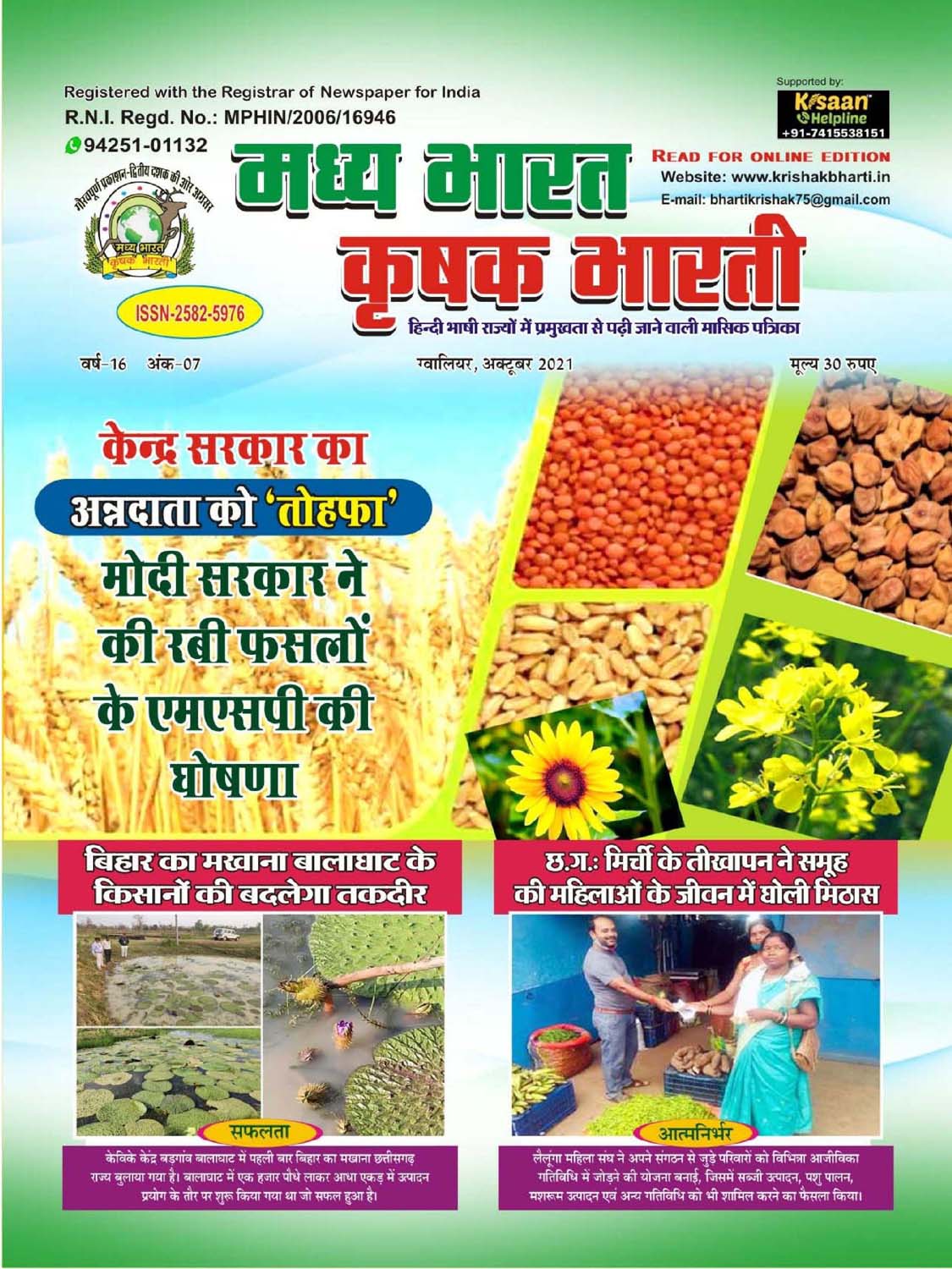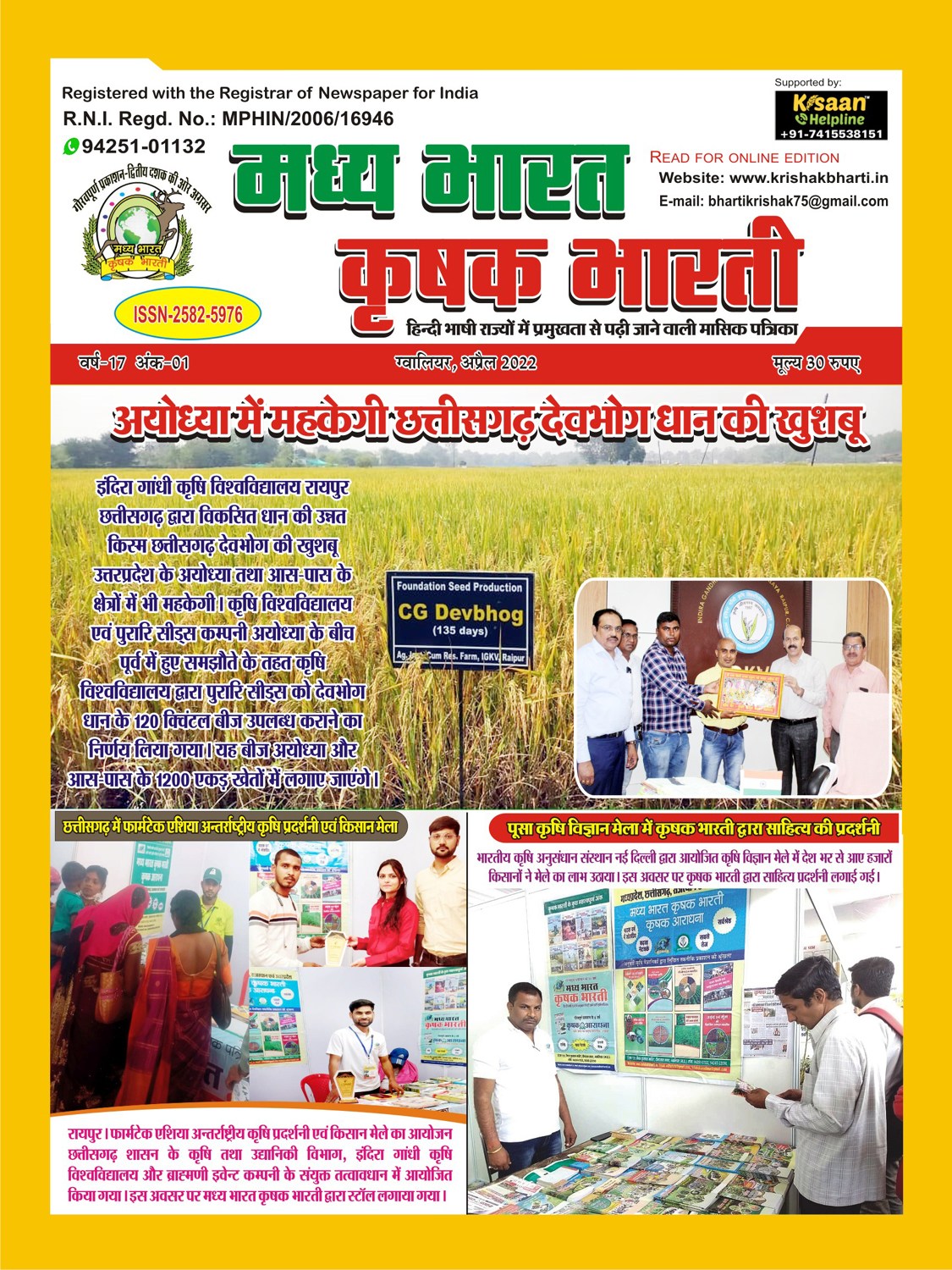 The best agricultural monthly magazine of Hindi speaking states, Madhya Bharat Krishak Bharati, is the only agricultural magazine published from North Madhya Pradesh.