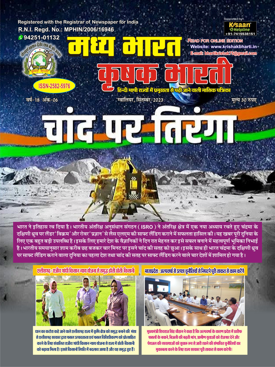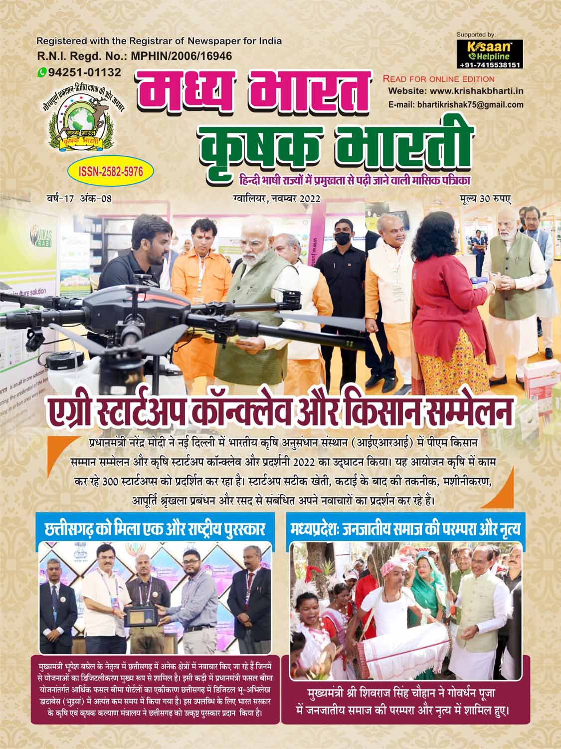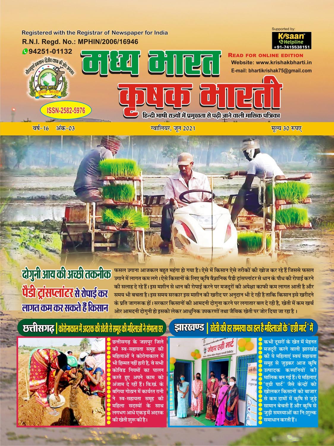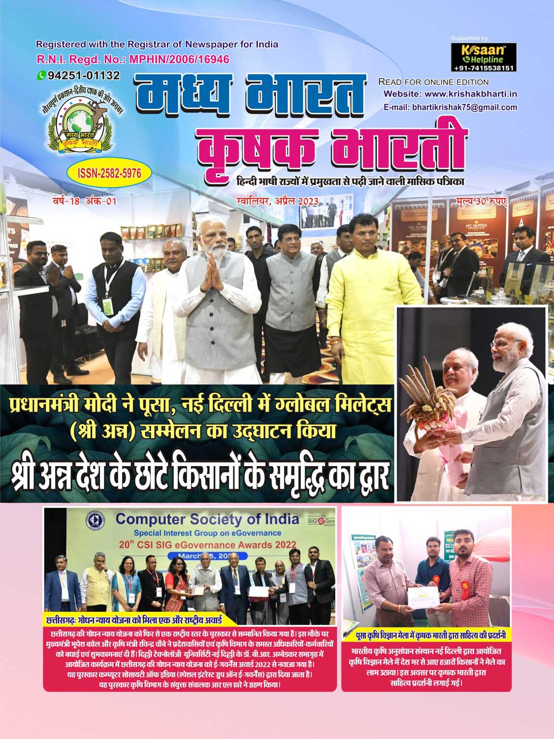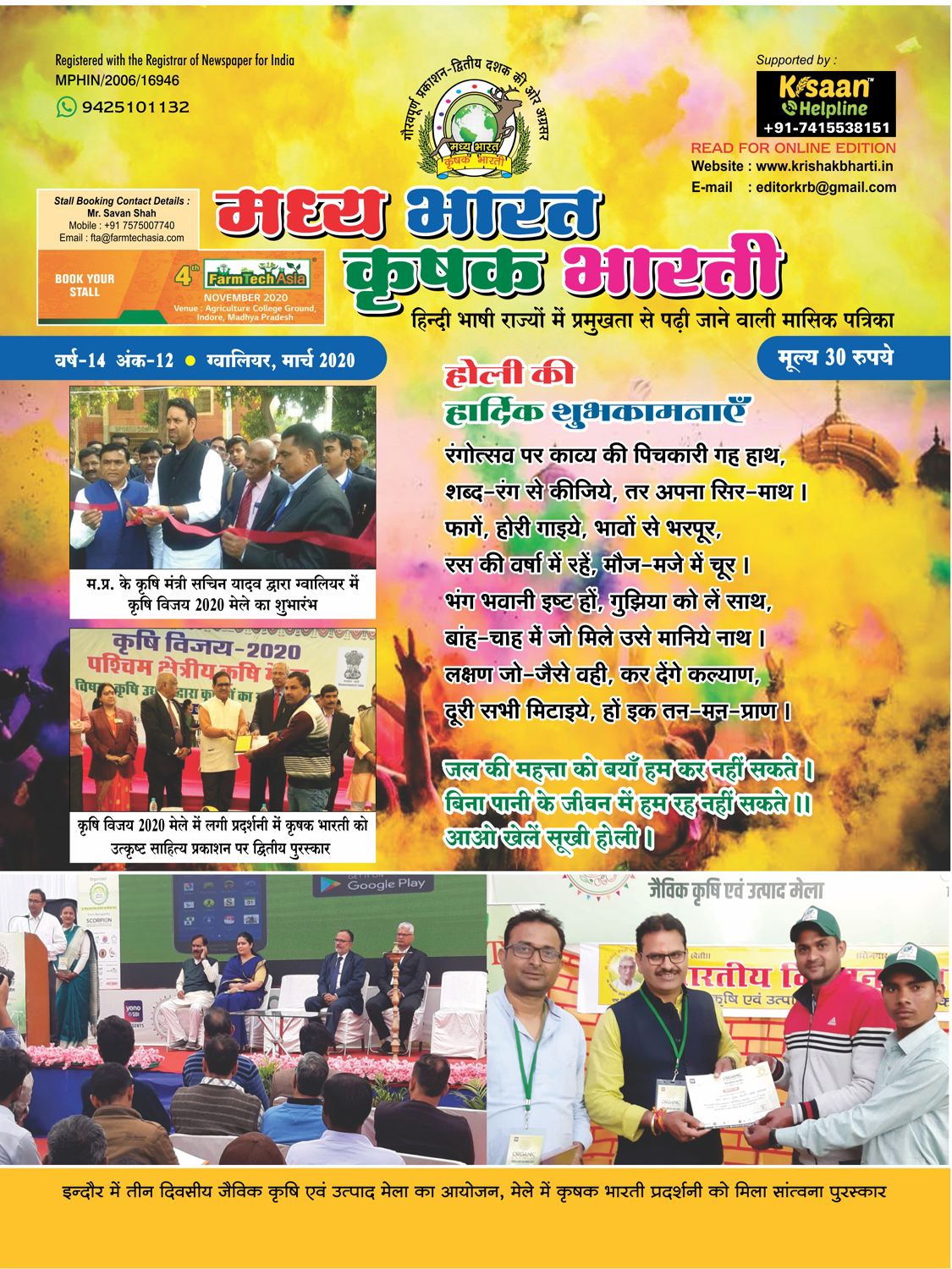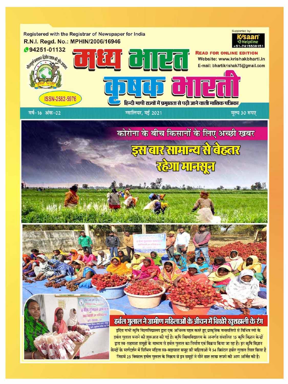 The best agricultural monthly magazine of Hindi speaking states, Madhya Bharat Krishak Bharati, is the only agricultural magazine published from North Madhya Pradesh.