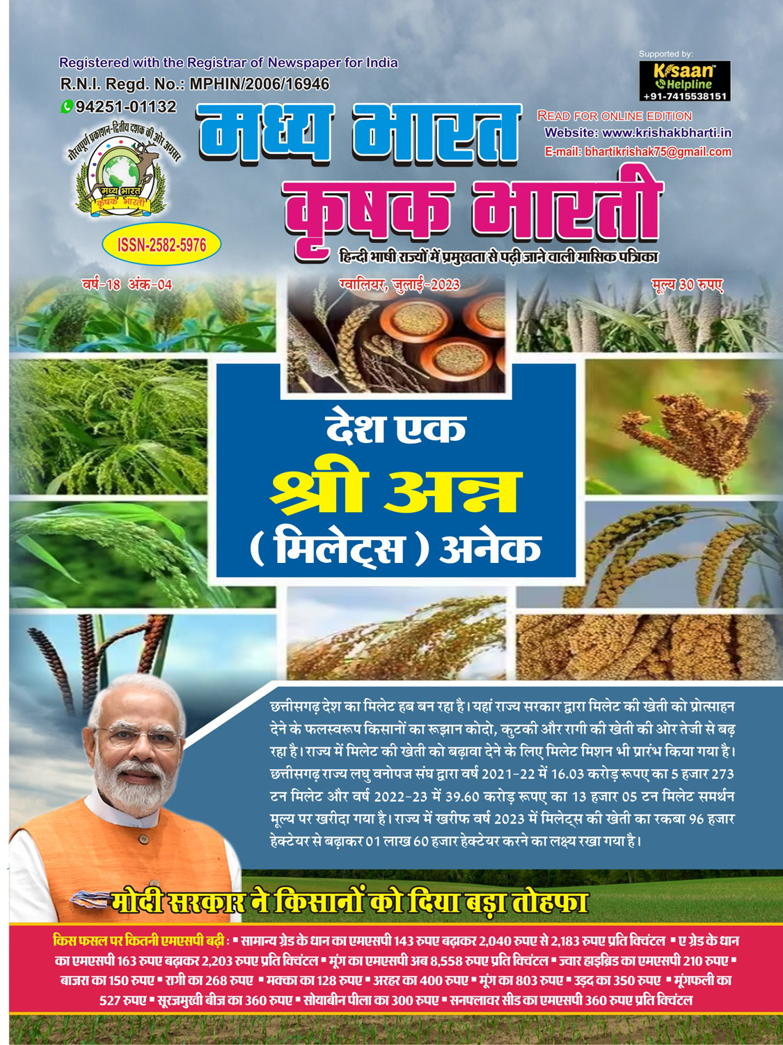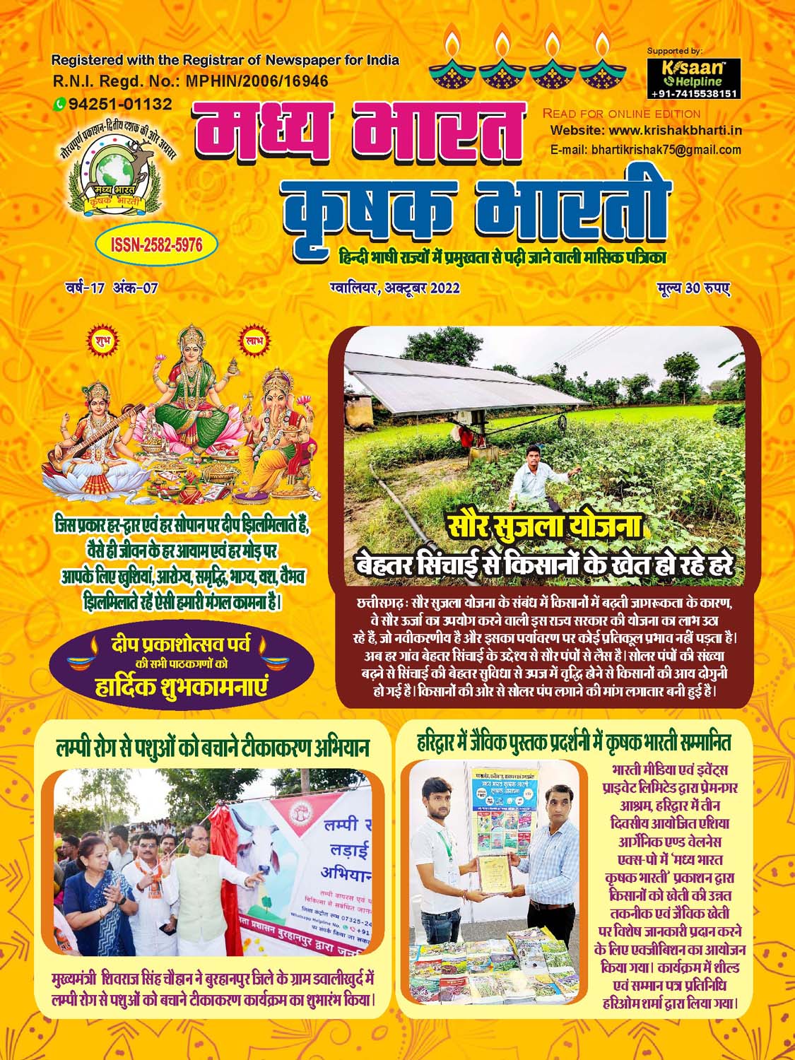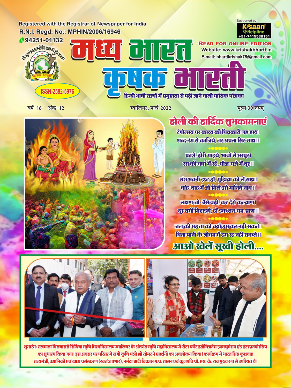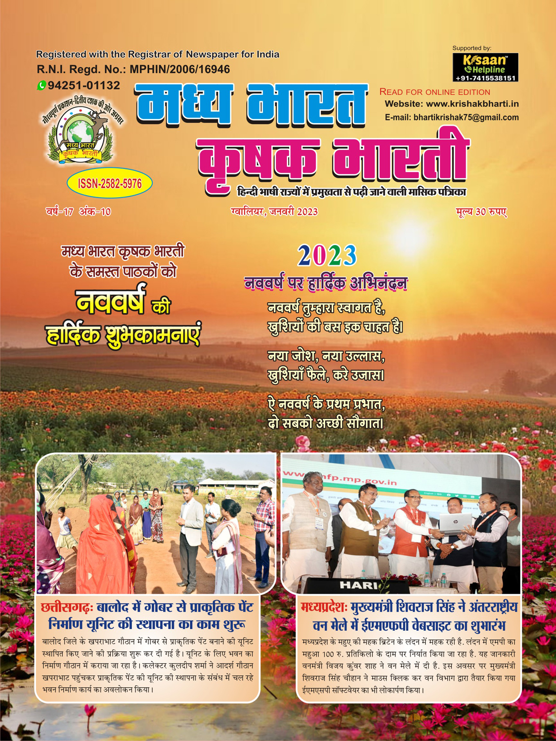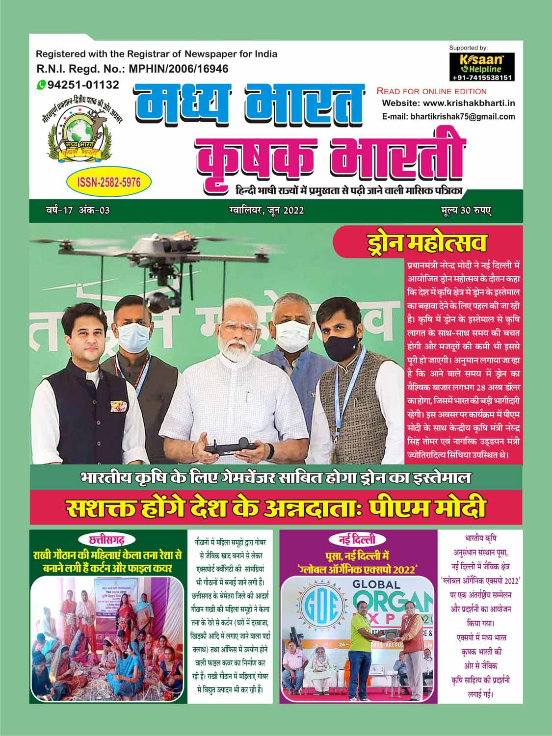The best agricultural monthly magazine of Hindi speaking states, Madhya Bharat Krishak Bharati, is the only agricultural magazine published from North Madhya Pradesh.