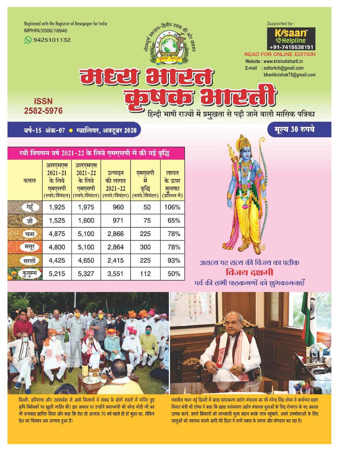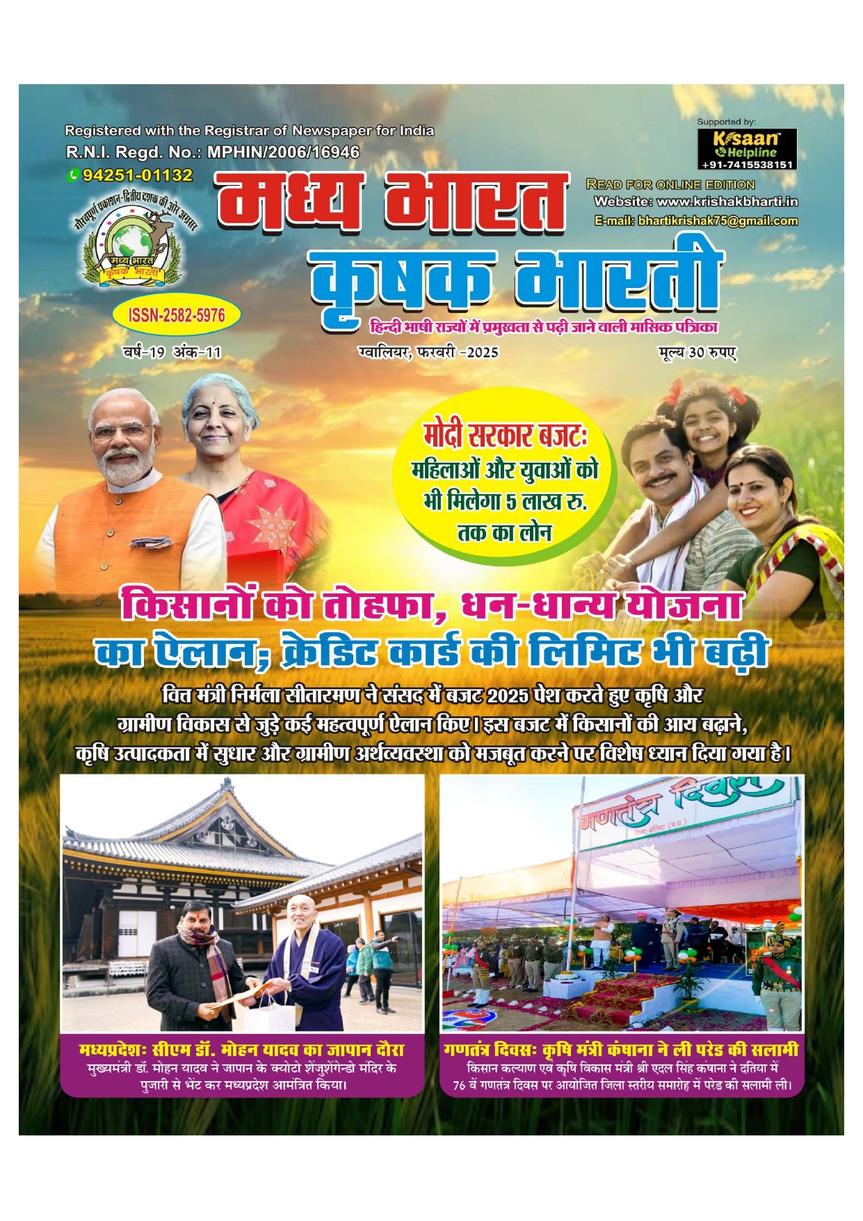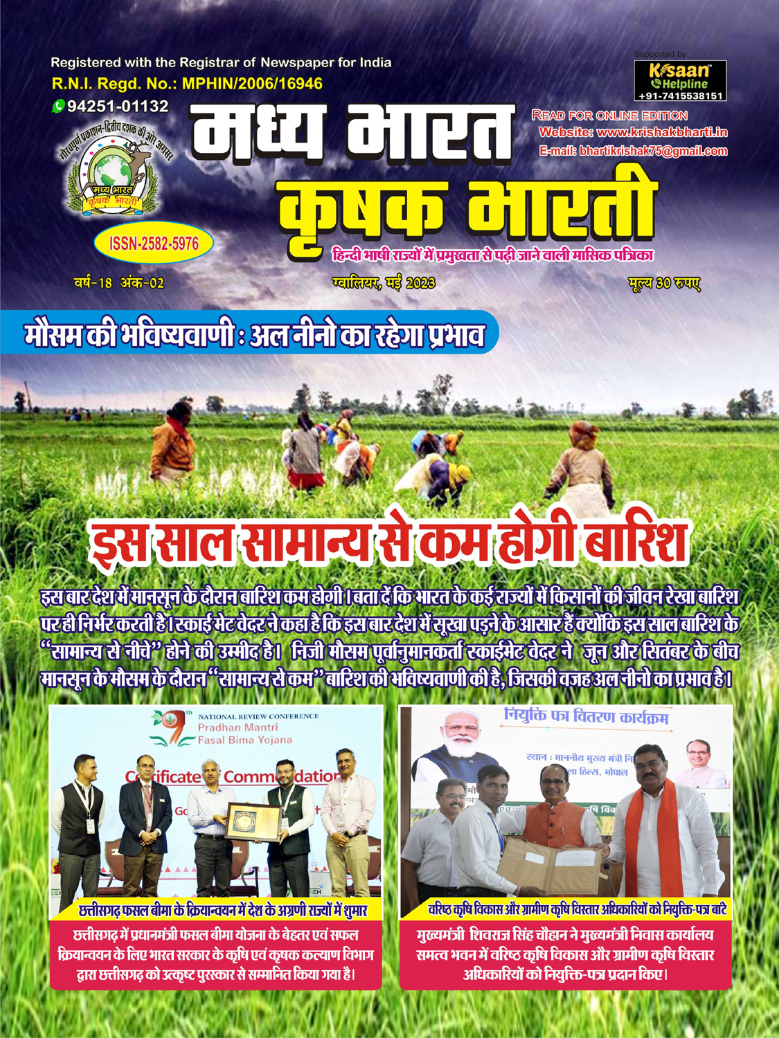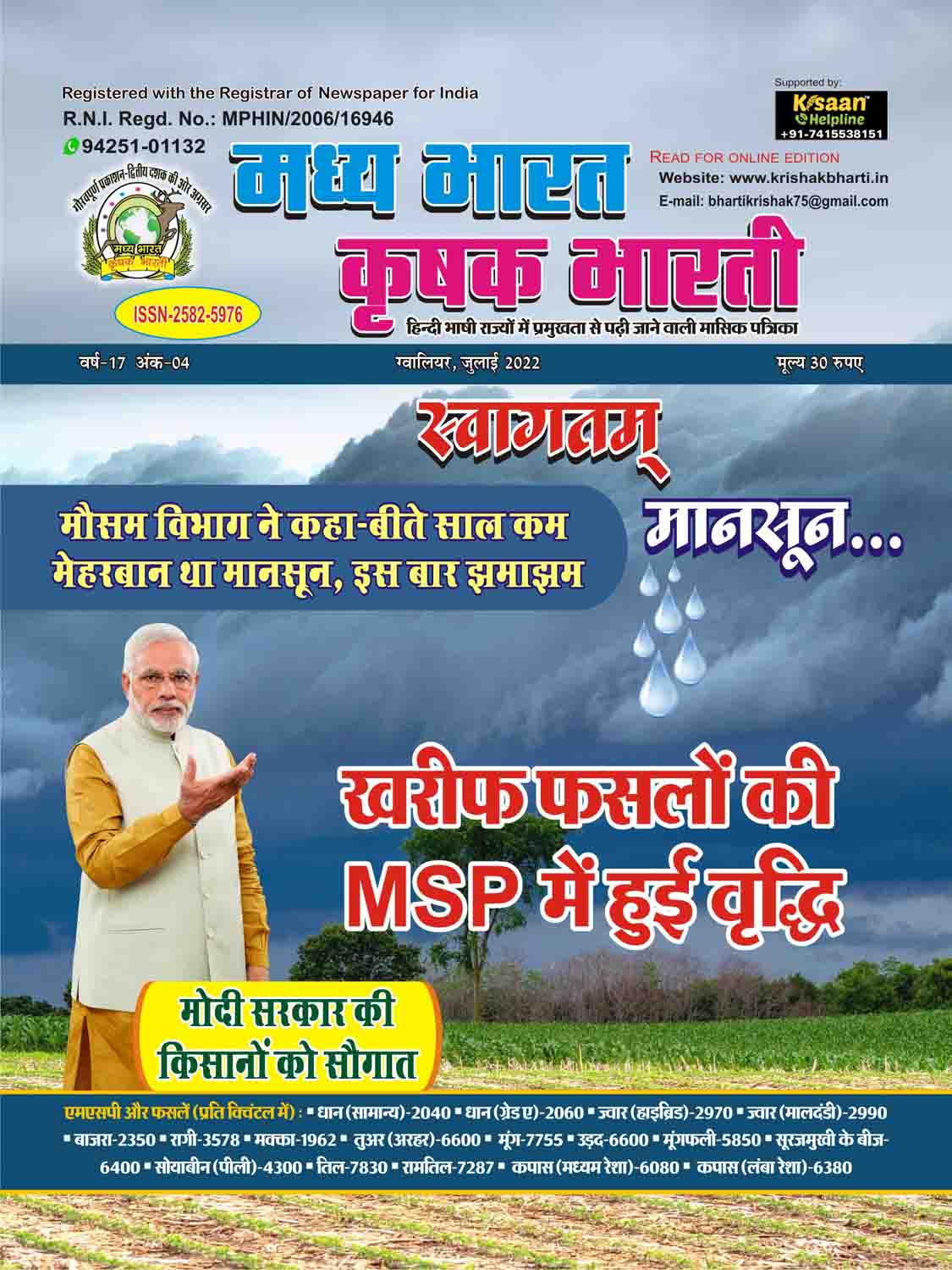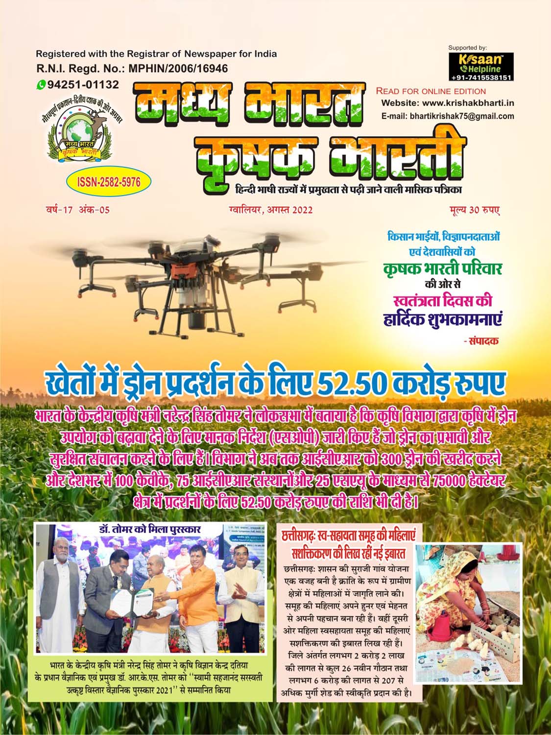 The best agricultural monthly magazine of Hindi speaking states, Madhya Bharat Krishak Bharati, is the only agricultural magazine published from North Madhya Pradesh.